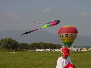 九州支部、長崎佐世保のMクラス坂口さんの個人バレー。 カイトはエクセス? 和風の曲に合った素晴らしい演技でした。 手前の帽子をかぶった九州佐賀の松尾さんです、カイトの紹介、楽しみ方 で出演願いました、しかし画像が無い、m(_ _)m 左は九州福岡のMOVE、堤博子さん MOVEさんも出演して頂きました。 さすが、MOVEさんでした。 (^_^)v 拡大画像有り |